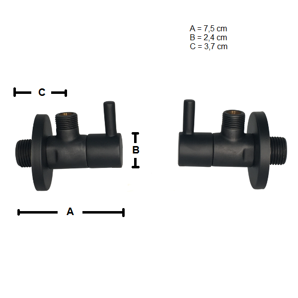Coppia di rubinetti tondi sottolavabo o sottobidet in ottone verniciato nero opaco.